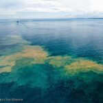 Dumai – Cairan berwarna hijau diduga zat kimia menghiasi permukaan laut Dumai