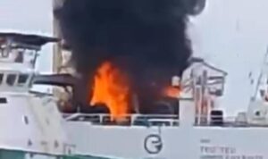 Sumbernya adalah Elsa Regent, kapal survei seismik canggih milik PT Elnusa Tbk, anak usaha PT Pertamina (Persero), yang terbakar hebat.