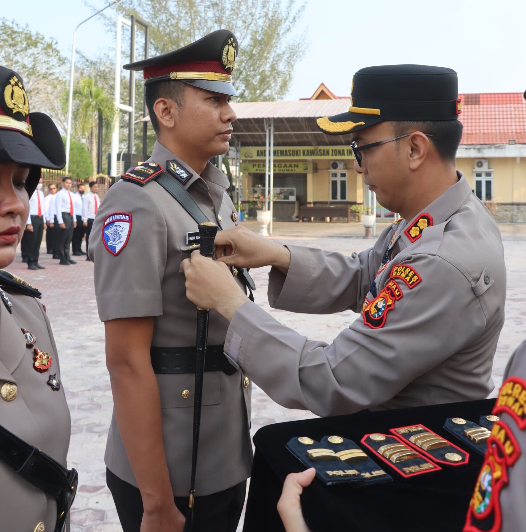 Upacara tersebut dilaksanakan berdasarkan keputusan Kapolda Riau terkait pemberhentian dan pengangkatan jabatan di lingkungan Polda Riau. Sejumlah pejabat utama Polres Dumai turut hadir bersama personel dan Bhayangkari Cabang Dumai.