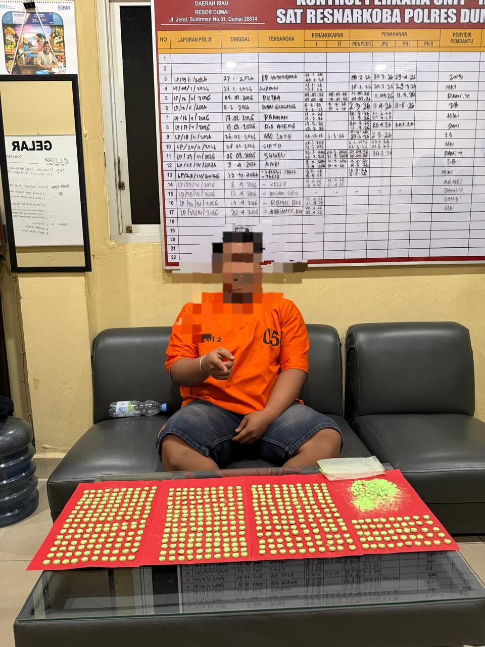 Pada Jumat, 24 April 2026 sekira pukul 00.30 WIB, Tim Opsnal Satres Narkoba Polres Dumai berhasil mengamankan seorang berinisial M.N. di tepi jalan kebun sawit, Jalan Garuda Sakti, Kelurahan Bumi Ayu, Kecamatan Dumai Selatan.