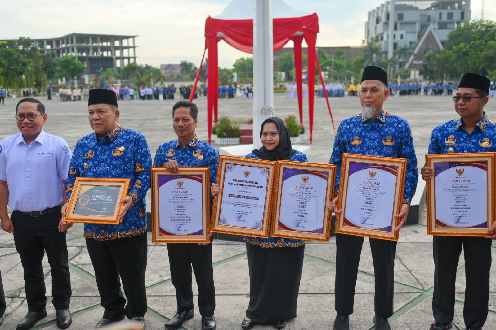Penghargaan diberikan pada kegiatan Apel Gabungan Peringatan Hari Kesehatan Nasional (HKN) ke-61 Tahun 2025 dengan tema ‘Generasi Sehat, Masa Depan Hebat’ yang berlangsung di Halaman Kantor Gubernur Riau, Pekanbaru, Senin (17/11/2025) pagi.