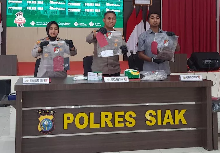 Pengungkapan disampaikan dalam konferensi pers yang dipimpin Kapolres Siak Sepuh Ade Irsyam Siregar, didampingi Wakapolres Akira Ceria serta Kasatreskrim AKP Tidar Laksono, di Gedung Endra Dharmalaksana, Mapolres Siak, Kamis (19/2/2026) siang.